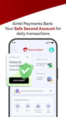 ஏர்டெல் UPI வழியாக வங்கிக் கணக்குகளுக்கு இடையில் பாதுகாப்பாகவும் விரைவாகவும் பணத்தை மாற்றுங்கள். எந்தவொரு UPI ஐடியுடனும் பரிமாற்றம் செய்யுங்கள், QR குறியீடுகளை ஸ்கேன் செய்து பணம் செலுத்துங்கள், மேலும் உங்கள் வங்கி இருப்பையும் சரிபாருங்கள். ஏர்டெல் பேமெண்ட்ஸ் வங்கி மூலம் சில நிமிடங்களில் பாதுகாப்பான இரண்டாம் கணக்கை துவக்கி, மோசடி எச்சரிக்கை, வரம்பு மேலாண்மை மற்றும் ஸ்லீப் மோட் போன்ற அம்சங்களுடன் உங்கள் நிதியை பாதுகாப்பாக நிர்வகிக்கலாம். OTT சந்தாக்கள், கடன் EMI-கள், காப்பீட்டு பிரீமியங்கள் போன்றவற்றுக்கு ஆட்டோபே அமைத்துக்கொள்ளுங்கள் அல்லது NETC ஃபாஸ்டேக்கை வாங்கலாம்/ரீசார்ஜ் செய்யலாம். ஆக்சிஸ் வங்கி, DMI ஃபைனான்ஸ், மணிவியூ, கிரெடிட் சைசன் போன்ற நம்பகமான கூட்டாளர்களுடன் ஏர்டெல் வழங்கும் டிஜிட்டல் தனிநபர் கடன்கள் மூலம் நிதி உதவிகளைப் பெறுங்கள். உங்கள் மொபைல் டேட்டா பயன்பாட்டை தொடர்ந்து சரிபார்க்கவும், தேவையற்ற அழைப்புகளைத் தடுக்கவும், ஸ்பேம் அழைப்புகளைப் புகாரளிக்கவும் இது ஒரு சிறந்த துணை. நவீன வாழ்க்கையின் ஒவ்வொரு அடியிலும் ஏர்டெல் உங்களுடன் துணை நிற்கிறது.