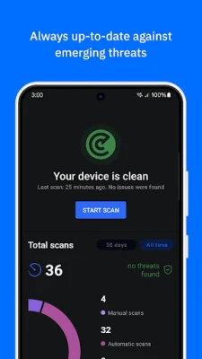 Bitdefender பாதுகாப்புச் செயலியின் அதிநவீன ஆன்டிவைரஸ், உங்கள் சாதனத்தில் புதிய மற்றும் ஏற்கனவே உள்ள மிரட்டல்களை அடையாளம் கண்டு நீக்குகிறது. 100% கண்டறிதல் விகிதத்துடன் கூடிய மால்வேர் ஸ்கேனர், தீங்கிழைக்கும் கோப்புகள், ஆட்வேர் மற்றும் ரான்சம்வேர் ஆகியவற்றை நுட்பமாக அணுகி, அவற்றை அப்புறப்படுத்துகிறது. ஆப் அனோமலி டிடெக்ஷன் அம்சம், ஒவ்வொரு செயலியின் நடத்தையையும் உன்னிப்பாகக் கவனித்து, சந்தேகத்திற்கிடமான செயல்பாடுகளை உடனுக்குடன் தடுக்கும். மேலும், வலைத்தளப் பாதுகாப்பு மூலம் தந்திரவாத மற்றும் மோசடி இணையதளங்கள் உங்கள் தனிப்பட்ட மற்றும் நிதித் தகவல்களைக் களவாடுவதைத் தடுக்கிறது. SMS, அரட்டை மற்றும் அறிவிப்புகளில் மறைந்திருக்கும் சந்தேகத்திற்கிடமான இணைப்புகளை ஸ்கேன் செய்யும் ஸ்கேம் அலர்ட், பாதுகாப்புச் சுவராகச் செயல்படுகிறது.