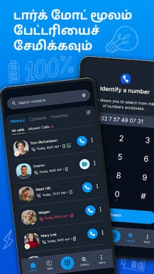 உங்கள் அழைப்பு அனுபவத்தை மேம்படுத்துங்கள்! முழுத்திரை காலர் ID, தொந்தரவு அழைப்பு தடை, மற்றும் முழுத்திரை புகைப்படங்களுடன் உள்ளுணர்வு டயலர். அழைப்பில் சமூக நெட்வொர்க் அணுகல், எளிதான ரிவர்ஸ் லுக்ப் போன்ற அம்சங்கள் கொண்ட சக்திவாய்ந்த செயலி.