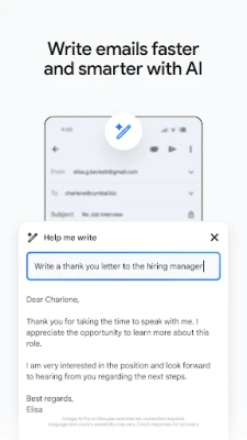 உங்கள் இன்பாக்ஸை ஒழுங்கமைப்பதும், தேடுவதும் Gmail இல் ஒரு கலை. உடனடி முடிவுகள், டைப் செய்யும்போது காட்டப்படும் கணிப்புகள் மற்றும் எழுத்துப்பிழை திருத்தங்கள் மூலம் எந்த மின்னஞ்சலையும் நொடிகளில் கண்டுபிடியுங்கள். லேபிளிடுதல், நட்சத்திரமிடுதல், நீக்குதல் அல்லது ஸ்பேம் எனப் புகாரளித்தல் போன்ற செயல்பாடுகள் மூலம் உங்கள் இன்பாக்ஸை உங்கள் விருப்பப்படி வடிவமைக்கலாம். உங்கள் Wear OS வாட்ச்சில் Gmail காட்சிப்பகுதியைச் சேர்ப்பதன் மூலம் உங்கள் அஞ்சல்களை விரைவாக மேலோட்டமாகப் பார்க்கலாம். Google Workspace இன் ஒரு அத்தியாவசிய பகுதியாக, Gmail உங்கள் குழுவினருடன் இணைந்து பணிபுரிய ஒரு தளத்தை வழங்குகிறது. Google Meet அழைப்புகளை இணைப்பது, Google Calendar நிகழ்வுகளுக்குப் பதிலளிப்பது எனப் பல பணிகளை ஆப்ஸிற்குள்ளேயே செய்து முடிக்கலாம். ஸ்மார்ட் கம்போஸ், இலக்கணப் பரிந்துரைகள் மற்றும் நினைவூட்டல்கள் போன்ற அறிவார்ந்த அம்சங்கள் உங்கள் உற்பத்தித்திறனை மேம்படுத்தி, நேரத்தை மிச்சப்படுத்துகின்றன. Google இன் மேம்பட்ட மெஷின் லேர்னிங் மாடல்கள் 99.9% க்கும் அதிகமான ஸ்பேம், ஃபிஷிங் மற்றும் மால்வேர்களைத் தடுப்பதன் மூலம், Google Workspace பயனர்களுக்கு இணையற்ற பாதுகாப்பை உறுதி செய்கிறது.