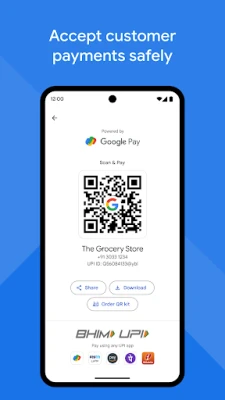 வணிக உலகத்தில் பணப் பரிமாற்றங்களை எளிதாக்குவதும், பாதுகாப்பாகவும், விரைவாகவும் நிர்வகிப்பதும் ஒரு சவாலாக இருக்கலாம். ஆனால், Google Pay for Business உங்களுக்கு உறுதுணையாக நிற்கிறது. இந்தியாவின் லட்சக்கணக்கான டிஜிட்டல் பயனர்களிடமிருந்து எந்தவொரு தடங்கலுமின்றி, உடனடியாகப் பணம் பெற இது வழிவகுக்கிறது. 80-க்கும் மேற்பட்ட BHIM UPI செயலிகளைப் பயன்படுத்தும் உங்கள் வாடிக்கையாளர்கள், Google Pay for Business வழியாக எளிதில் பணம் செலுத்தலாம், உங்கள் வணிகத்தை புதிய உச்சங்களுக்குக் கொண்டு செல்லலாம். Google-இன் நம்பகத்தன்மையுடன், உங்கள் நிதிப் பரிமாற்றங்கள் பாதுகாப்பாக இருக்கும் என்ற நம்பிக்கையுடன் நீங்கள் வணிகத்தில் கவனம் செலுத்தலாம்.