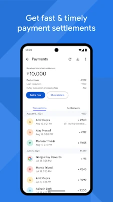 Google Pay for Business மூலம் உங்கள் வணிகத்திற்கான டிஜிட்டல் பேமெண்ட்களை எளிமையாகவும் பாதுகாப்பாகவும் பெறுங்கள். அனைத்து அளவிலான வணிகங்களுக்கும் உதவ வடிவமைக்கப்பட்ட இந்தச் செயலி, உடனடிப் பணம் வங்கிக் கணக்கில் சேரவும், புதிய வாடிக்கையாளர்கள் உங்களைக் கண்டறியவும் உதவும்.