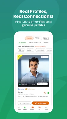 மராத்தி சமூகத்தினருக்கான இந்தியாவின் மிகப்பெரிய பொருத்தமான சேவை மையமாக, Marathi Matrimony தினசரி ஆயிரக்கணக்கான புதிய பதிவுகளைப் பெறுகிறது. ஒரு நம்பகமான தளமாக, உங்கள் சரியான வாழ்க்கைத் துணையைக் கண்டுபிடிக்க லட்சக்கணக்கான சரிபார்க்கப்பட்ட வரன்களை நாங்கள் வழங்குகிறோம். ஒரு சுயவிவரத்தை உருவாக்கி, எங்கள் சக்திவாய்ந்த MIMA™ செயற்கை நுண்ணறிவு வழிமுறையின் மூலம் உங்கள் விருப்பங்களுக்கு ஏற்ப துல்லியமான வரன் பரிந்துரைகளைப் பெறுங்கள். புதிய வரன்கள், உங்கள் சுயவிவரத்தில் ஆர்வம் காட்டுவோர் அல்லது பதிலளிப்போர் குறித்த உடனடி அறிவிப்புகளை உங்கள் மொபைலில் பெறுவீர்கள். அத்துடன், நகரம், கல்வி, பணி மற்றும் இருப்பிடம் போன்ற அதிநவீன வடிகட்டிகள் மூலம் உங்கள் துணைக்கான தேடலை துல்லியமாக்கலாம். பிரீமியம் உறுப்பினர்களுக்கு, பாதுகாப்பான உடனடி அரட்டை மற்றும் குரல் அழைப்பு வசதிகள் மூலம் வரன்களுடன் எந்நேரமும் தொடர்புகொள்ளலாம், அரசு அடையாள அட்டை சரிபார்க்கப்பட்ட நம்பகமான சுயவிவரங்களை 'Marathi Matrimony Prime' மூலம் அணுகலாம், பிரீமியம் பிரிவில் இடம்பெற்று சிறந்த பதில்களைப் பெறலாம், அத்துடன் இருப்பிடம், கல்வி மற்றும் ஜாதகம் போன்ற முழுமையான சுயவிவர விவரங்களை காணும் வாய்ப்பு கிடைக்கும்.