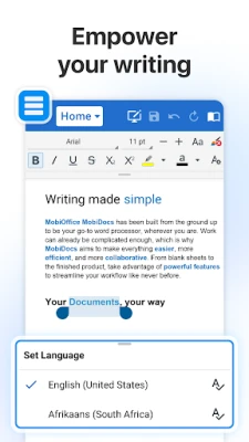 உங்கள் அனைத்து உற்பத்தித் தேவைகளுக்கும் ஒரே தீர்வு MobiOffice. சக்திவாய்ந்த டாக்குமெண்ட், ஸ்ப்ரெட்ஷீட் மற்றும் பிரசன்டேஷன் கருவிகளை உங்கள் விரல் நுனியில் பெறுங்கள். ஃபார்மட் பெயிண்டர், டிராக் சேஞ்சஸ், நிபந்தனை ஃபார்மட்டிங், ஃபார்முலாக்கள் மற்றும் பிரசன்டேஷன் மோட் போன்ற அதிநவீன அம்சங்கள் எந்தவொரு பணியையும் திறமையாக முடிக்க உங்களுக்கு உதவுகின்றன. பரிச்சயமான, டெஸ்க்டாப் போன்ற பணி அனுபவத்துடன், உங்கள் ஆவணங்களை PDF ஆக மாற்றும் வசதி மற்றும் மேம்பட்ட பாதுகாப்பு அம்சங்களுடன் நிம்மதியாகப் பணிபுரியலாம்.