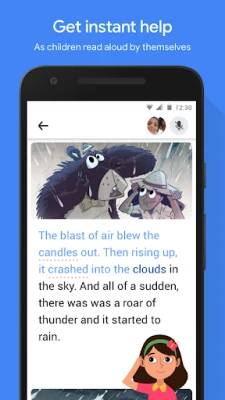 Read Along, குழந்தைகளுக்கான வாசிப்பு உலகத்தை ஒரு வேடிக்கையான சாகசமாக மாற்றுகிறது. ஆங்கிலம், தமிழ், இந்தி, ஸ்பானிஷ் உட்பட பல மொழிகளில் சுவாரஸ்யமான கதைகளை உரக்க வாசிக்க ஊக்குவிப்பதன் மூலம், குழந்தைகளின் வாசிப்புத் திறனை மேம்படுத்த இது ஒரு அற்புதமான கருவியாகும். Read Along-ன் உள்ளேயுள்ள பிரியமான உதவியாளர் "தியா", குழந்தைகள் வாசிக்கும்போது கவனமாகக் கேட்டு, அவர்களின் சரியான முயற்சிகளுக்கு ஊக்கமளித்து, எங்காவது தடுமாறினால் ஆதரவளித்து வழிநடத்துகிறது. இதன் மூலம் குழந்தைகள் தன்னம்பிக்கையுடன் கற்கிறார்கள்.