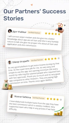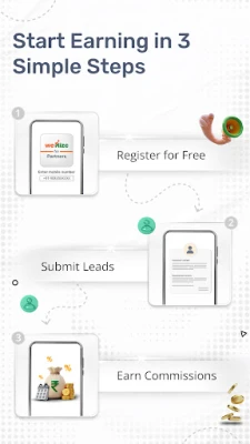 உங்கள் நிதி அறிவை லாபகரமான வணிகமாக மாற்ற, WeRize பார்ட்னர் செயலி ஒரு சிறந்த தளமாகும். இந்தியாவின் நிதித் துறையில் முன்னணி இடத்தைப் பிடித்துள்ள WeRize பார்ட்னர் ஆகி, எந்த முதலீடும் இல்லாமல், அதிக தேவை உள்ள கடன் மற்றும் சேமிப்புத் தயாரிப்புகளை உங்கள் வாடிக்கையாளர்களுக்கு வழங்கலாம். இதன் மூலம் மாதந்தோறும் ₹1 லட்சத்திற்கும் அதிகமான வருமானத்தை ஈட்டலாம். ஏற்கனவே 20,000க்கும் மேற்பட்ட பார்ட்னர்கள், இந்தியா முழுவதும் 5,000க்கும் அதிகமான நகரங்களில் உள்ள வாடிக்கையாளர்களுக்கு உயர்தர நிதி தீர்வுகளை வழங்குவதன் மூலம் பயனடைந்து வருகின்றனர். இச்செயலி நிதி ஆலோசகர்கள் மற்றும் முகவர்களின் வெற்றிக்கு ஒரு உறுதுணையாக அமைகிறது.
